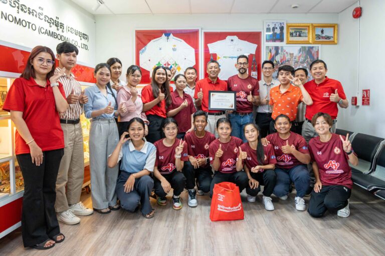 The Phnom Penh Crown Women’s Football Team visited the corporate office of AJINOMOTO (Cambodia) Co., Ltd. to present a letter of appreciation to their sponsor,…